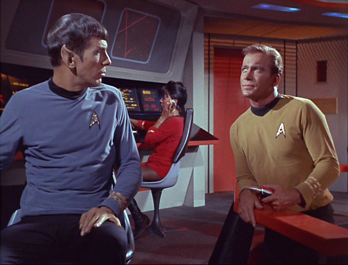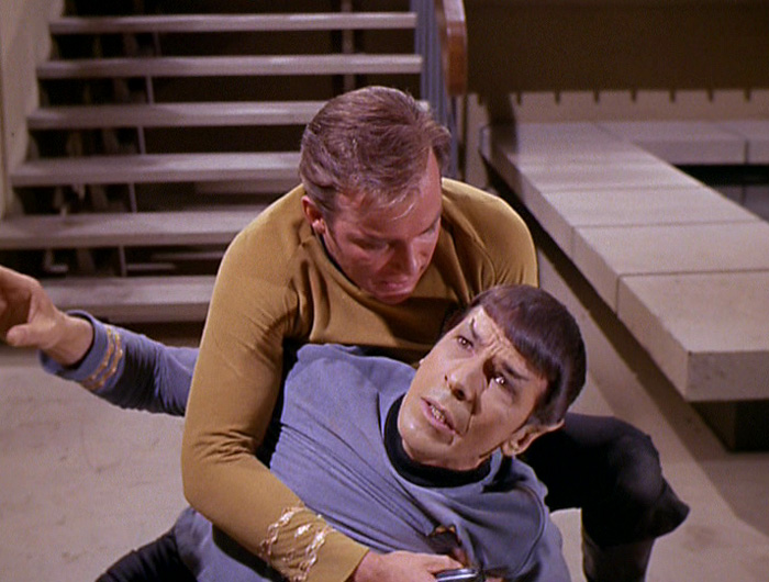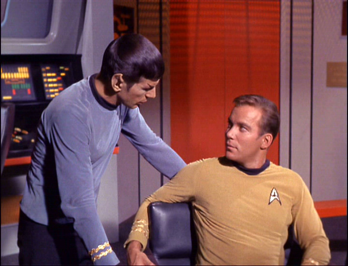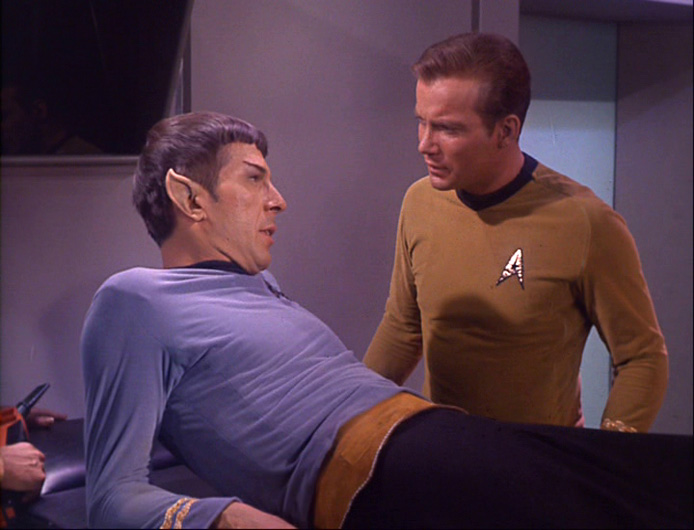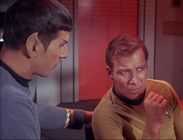 During the events of The Naked Time, as the Enterprise plummets towards the surface of Psi 2000, Spock makes an emotional confession to his captain and Kirk couldn't be happier.