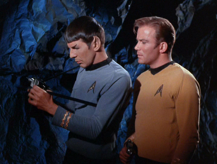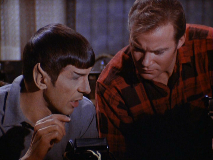 Kirk and Spock listening to records on a phonograph in an imagined moment during The City on the Edge of Forever.